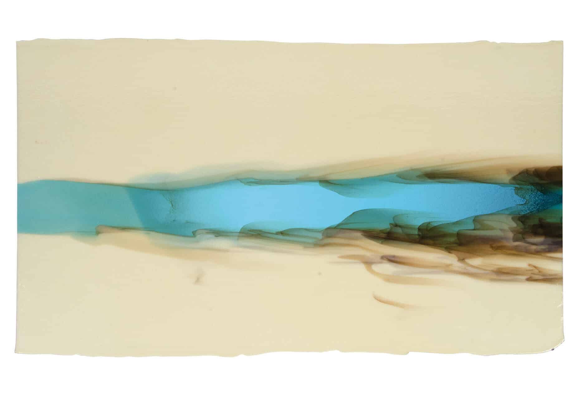 These are unique mixes of sulfur-bearing French Vanilla and copper-bearing Light Turquoise Blue, which create a reaction when combined. Expect reactions to intensify and darken when fired. Part of the fun and mystery of these styles is that no two are alike. Expect variation!
